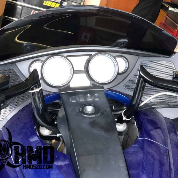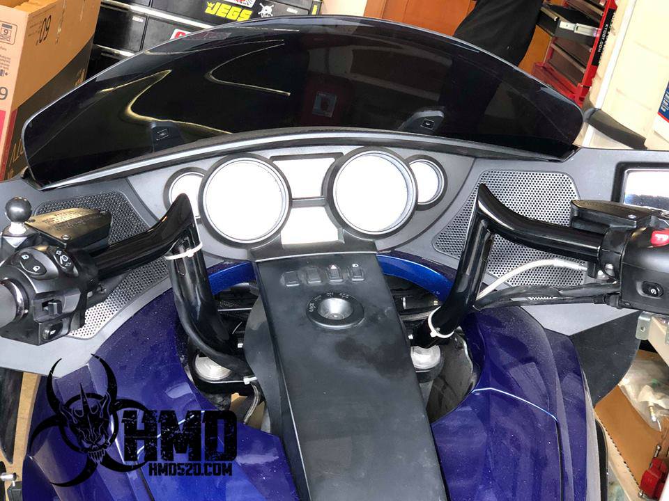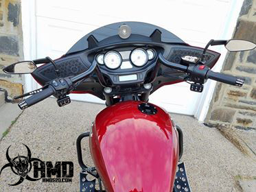 8. Reinstall all plugs to radio, gauge cluster, lighter, heated grips, speakers, and turn signals. Reinstall fairing. Slightly move outer